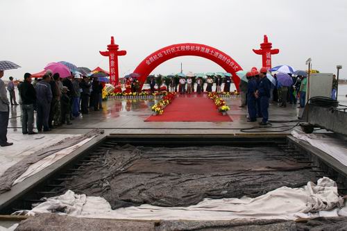 由公司承建的金昌機(jī)場(chǎng)停機(jī)坪工程按4C標(biāo)準(zhǔn)設(shè)計(jì),站坪機(jī)位4個(gè)(2B2C),總面積2.65萬平方米,可供波音737和空客320等機(jī)型的起降。該項(xiàng)工程自2009年10月進(jìn)場(chǎng),公司金昌機(jī)場(chǎng)項(xiàng)目部全體人員在高溫酷暑、大風(fēng)揚(yáng)沙等惡劣氣候條件下,克服種種困難,通過改進(jìn)施工工藝、調(diào)整作業(yè)時(shí)間等措施,順利完成了基礎(chǔ)施工。項(xiàng)目部?jī)H用了25個(gè)晝夜就完成停機(jī)坪2.65萬平方米混凝土道面工程施工。